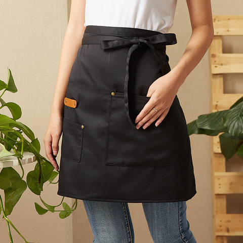 コットンリネンウェイターエプロンカスタムデザインロゴキッチンクッキングシェフハーフアジャスタブルコットンリネンウェイターエプロン